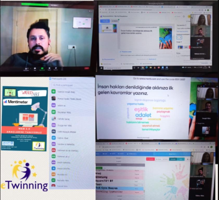 Kurucu ortaklığını okulumuz müdür yardımcısı Gmaze IRMAK'ın yürüttüğü eTwinning projesi ''Melseğini İyi Yap, Pabucun Dama Atılmasın'' da proje ekibi ve öğrenciler her ay yeni bir web 2.0 aracını tanıyor. Bu ay da proje ortaklarından Fatih Hüseyin IRMAK'ın sunumuyla Wordart ve Mentimeter tanıtan ekip, 10-16 Aralık Dünya İnsan Hakları ve Demokrasi Haftası kapsamında yapılan sunumun ardından öğrencilerin katılımıyla etkileşimli kelime bulutu hazırladılar. Bu keyifli ve öğretici etkinlik için kendilerine teşekkür ediyor çalışmalarında başarılar diliyoruz.